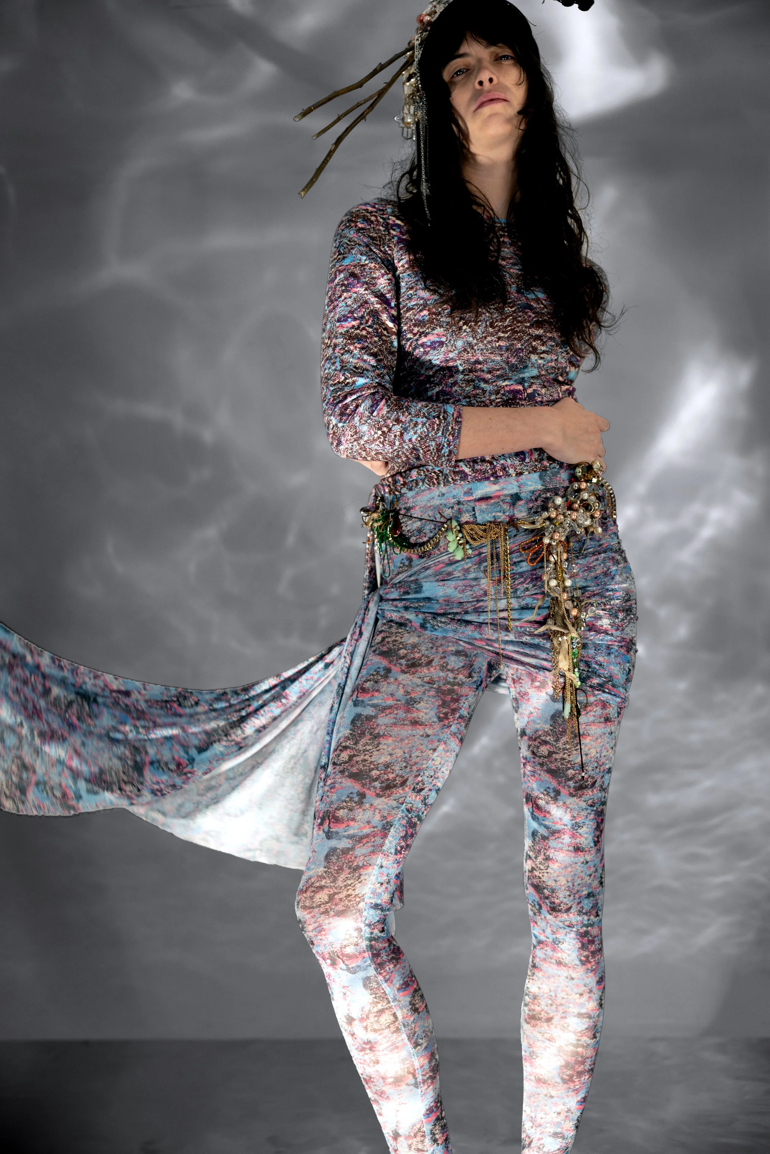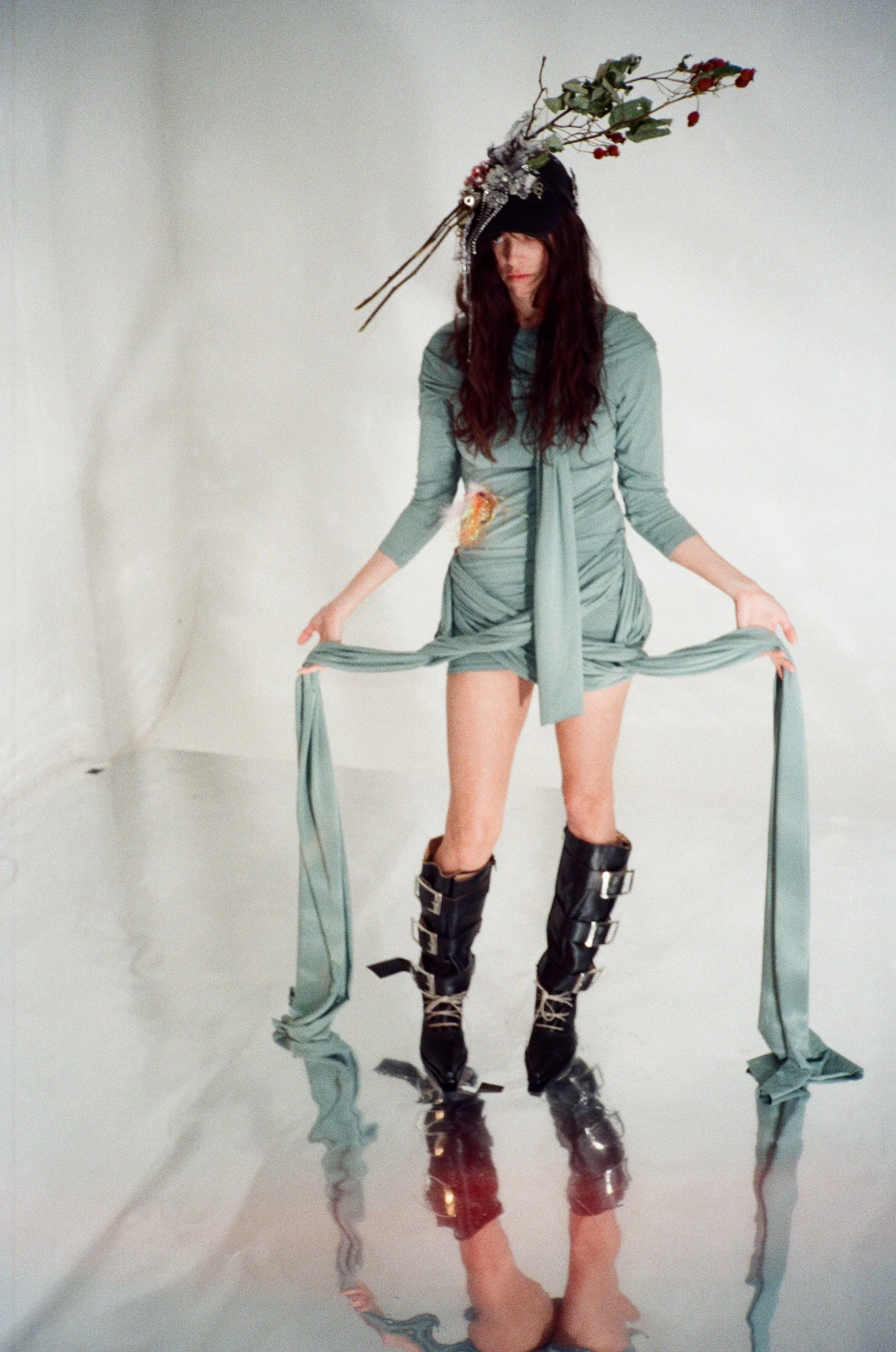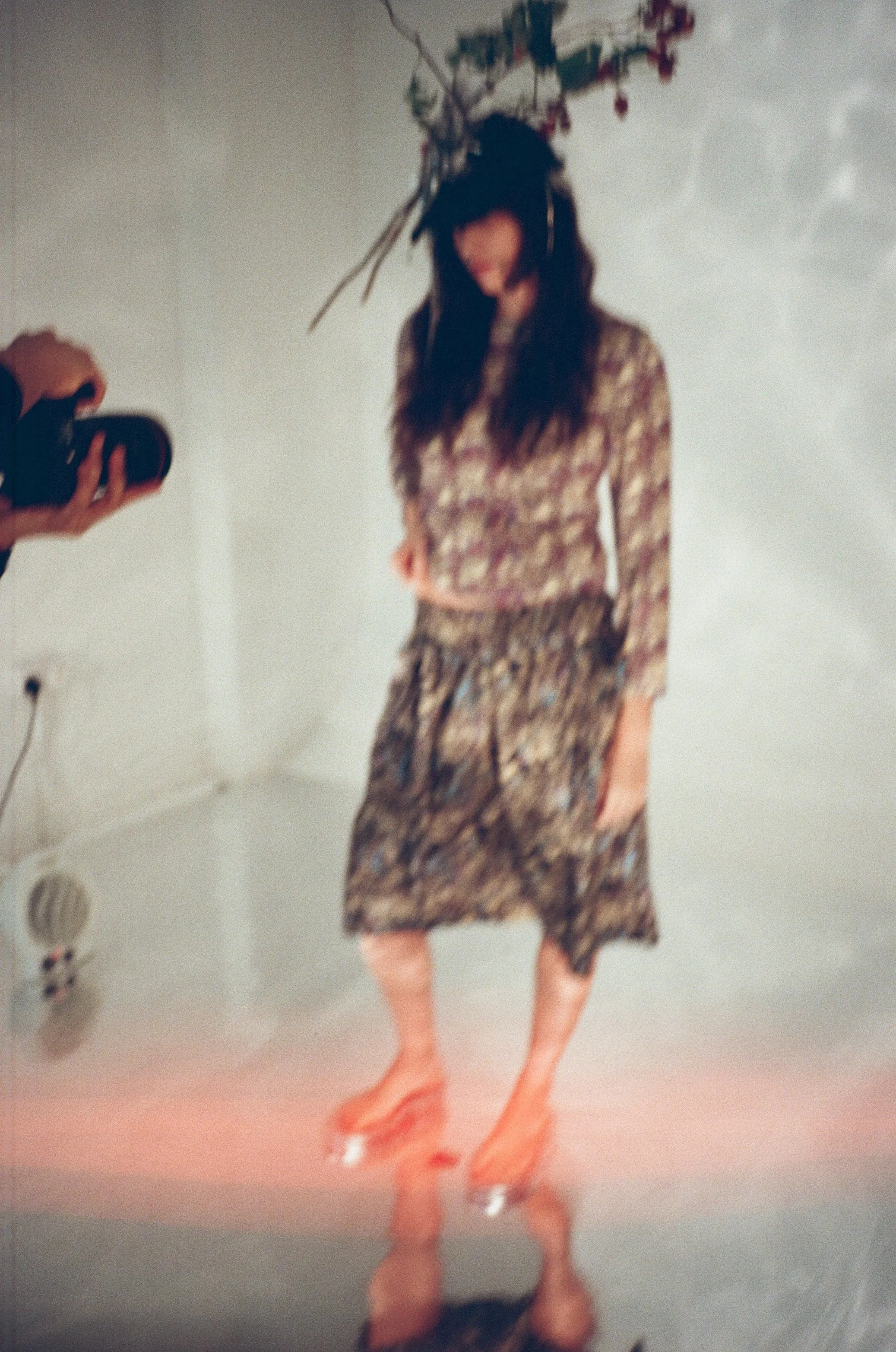 Inspired by long summer cycles through the Walthamstow Marshes during the heatwaves of 2025, the collection reflects a landscape of stillness and motion — working water, drifting light, and lives lived along the canal’s edge. Garments echo this rhythm through fluid dresses, bias-cut layers, second-skin printed pieces, and softly structured pieces. Quilted jackets and coats carry the weight of the collection, while sheer jerseys and lightweight wovens introduce breathability and ease.